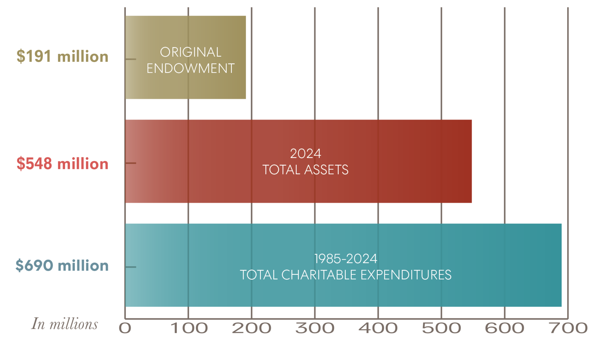 Since its inception in 1985, through 2024, The Colorado Trust has provided over $690 million in charitable support to grantees across Colorado.